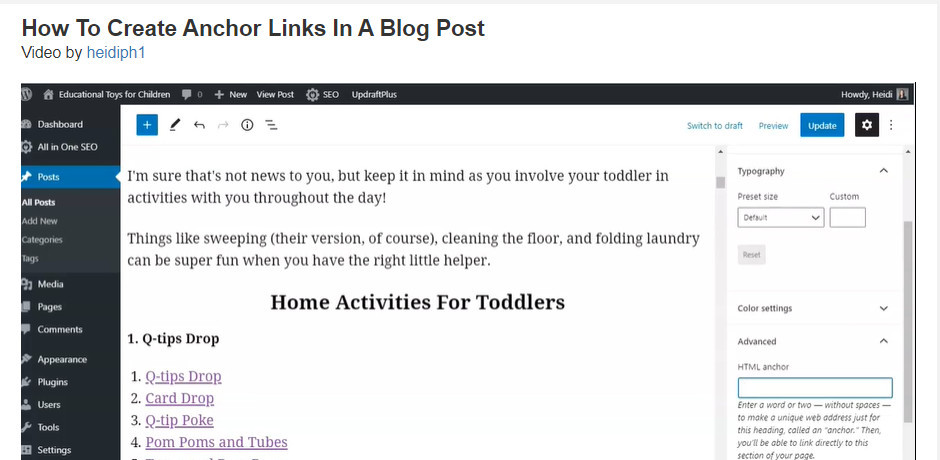 6. Preview your post and test your links. Ensure they work properly and take you to the right sections of your post. If not, go back and check your IDs and URLs for any typos or errors.